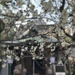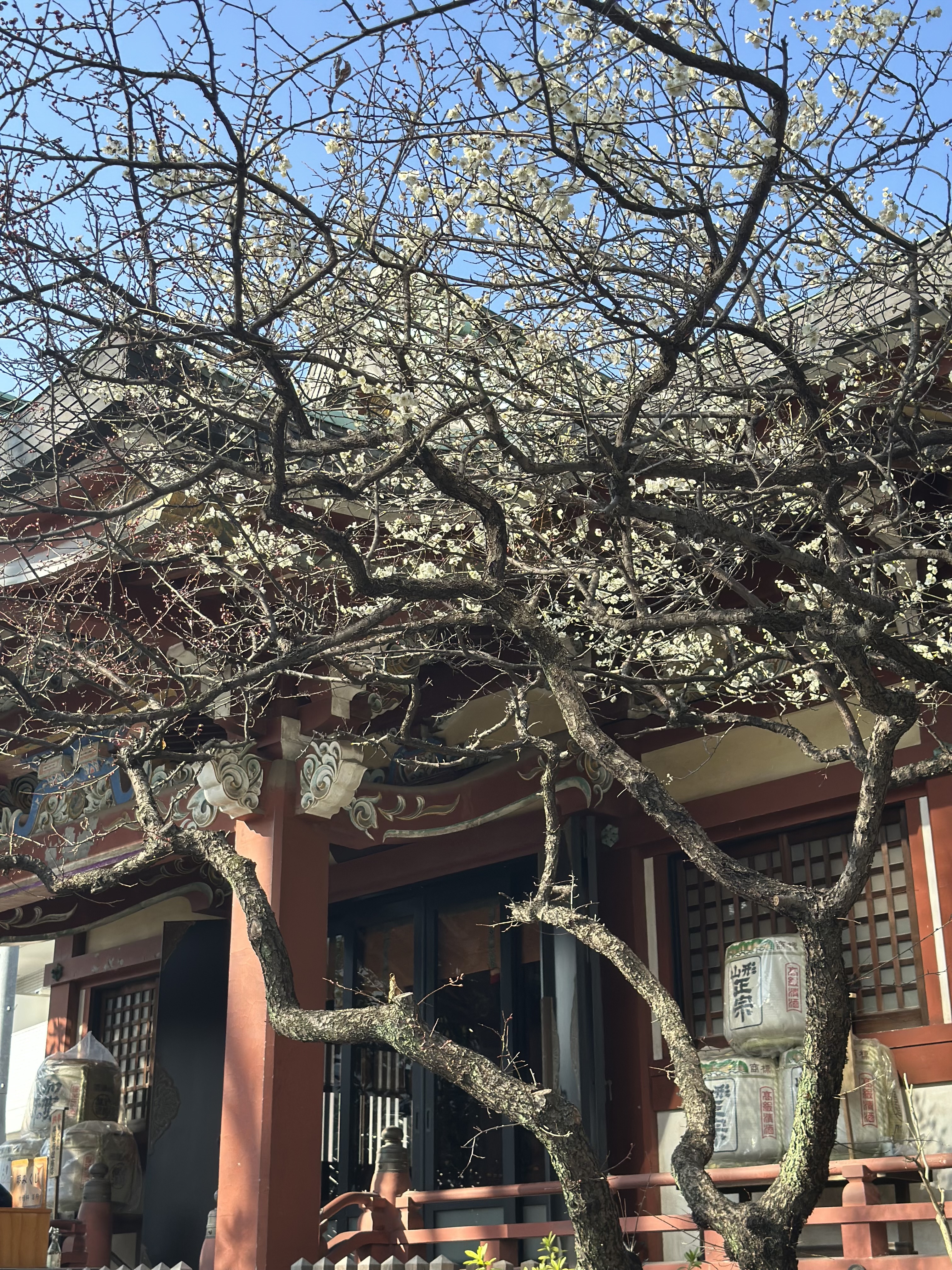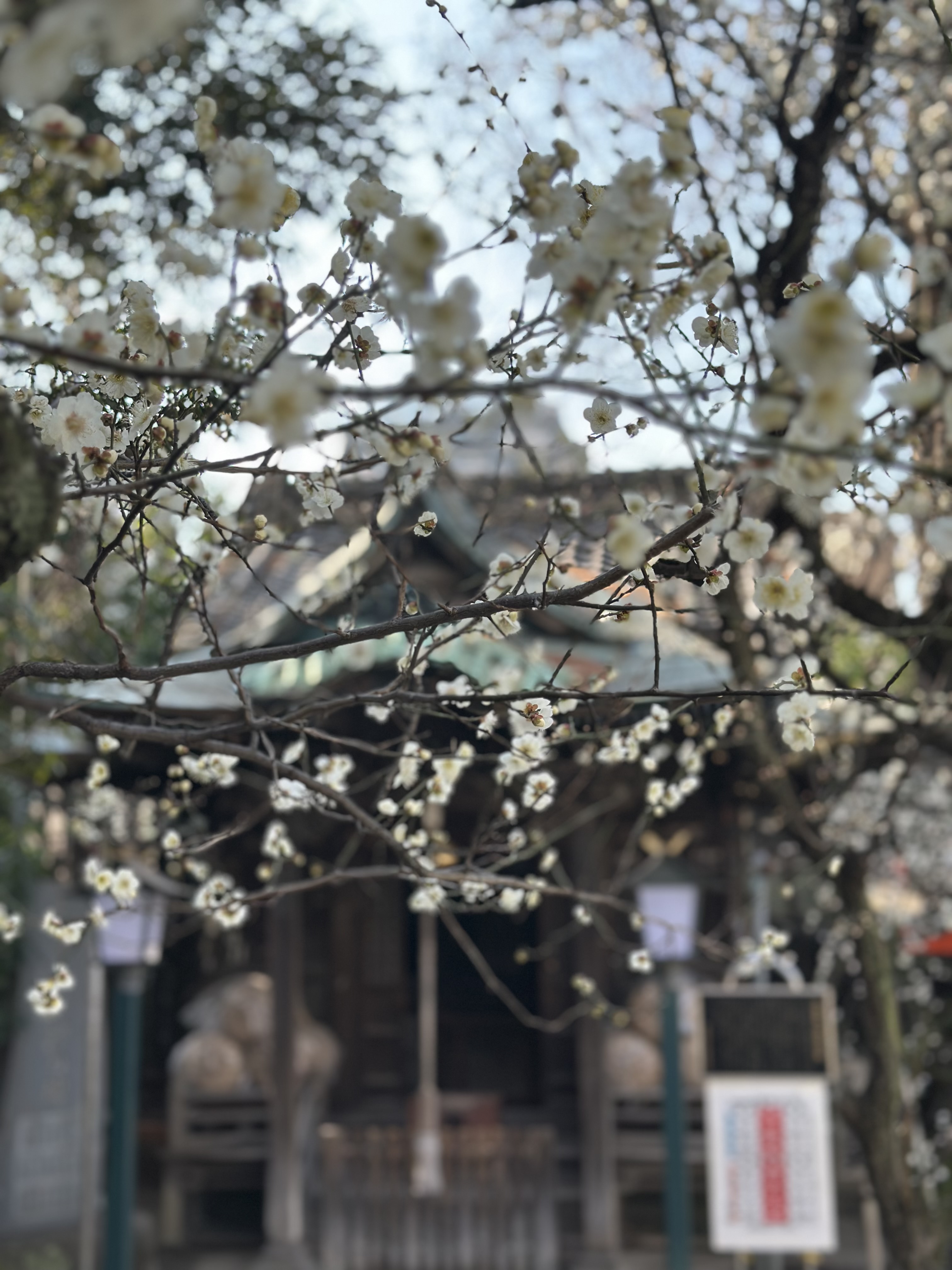 境内に広がる梅の香り 空は青く 花はやわらかな白